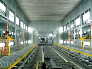 产品喷漆在喷漆室内进行,一般分为干式和湿式,干式喷漆室适用于产量小的喷涂,湿式喷漆室适用于大批量喷涂。湿式喷漆室有无泵、水帘、水旋和文丘里式等。